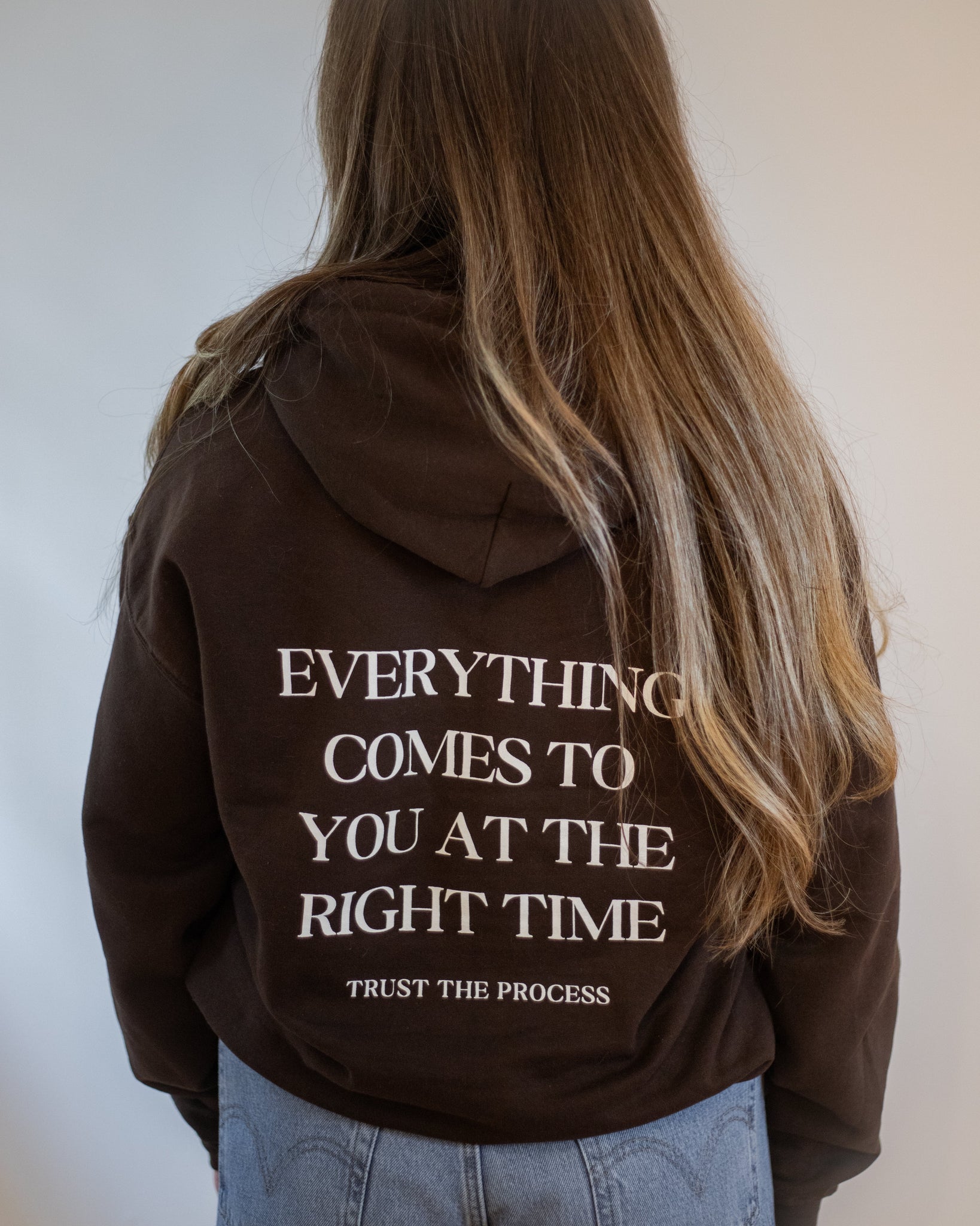 BACK: screen printed “Everything comes to you at the right time, trust the process”